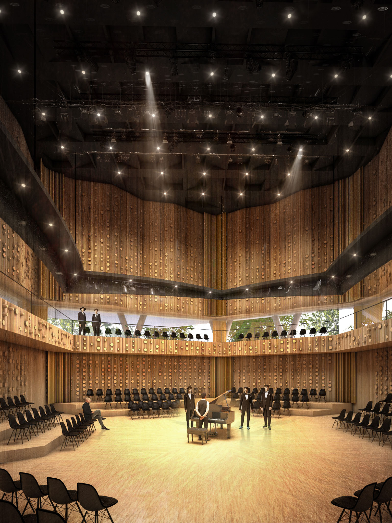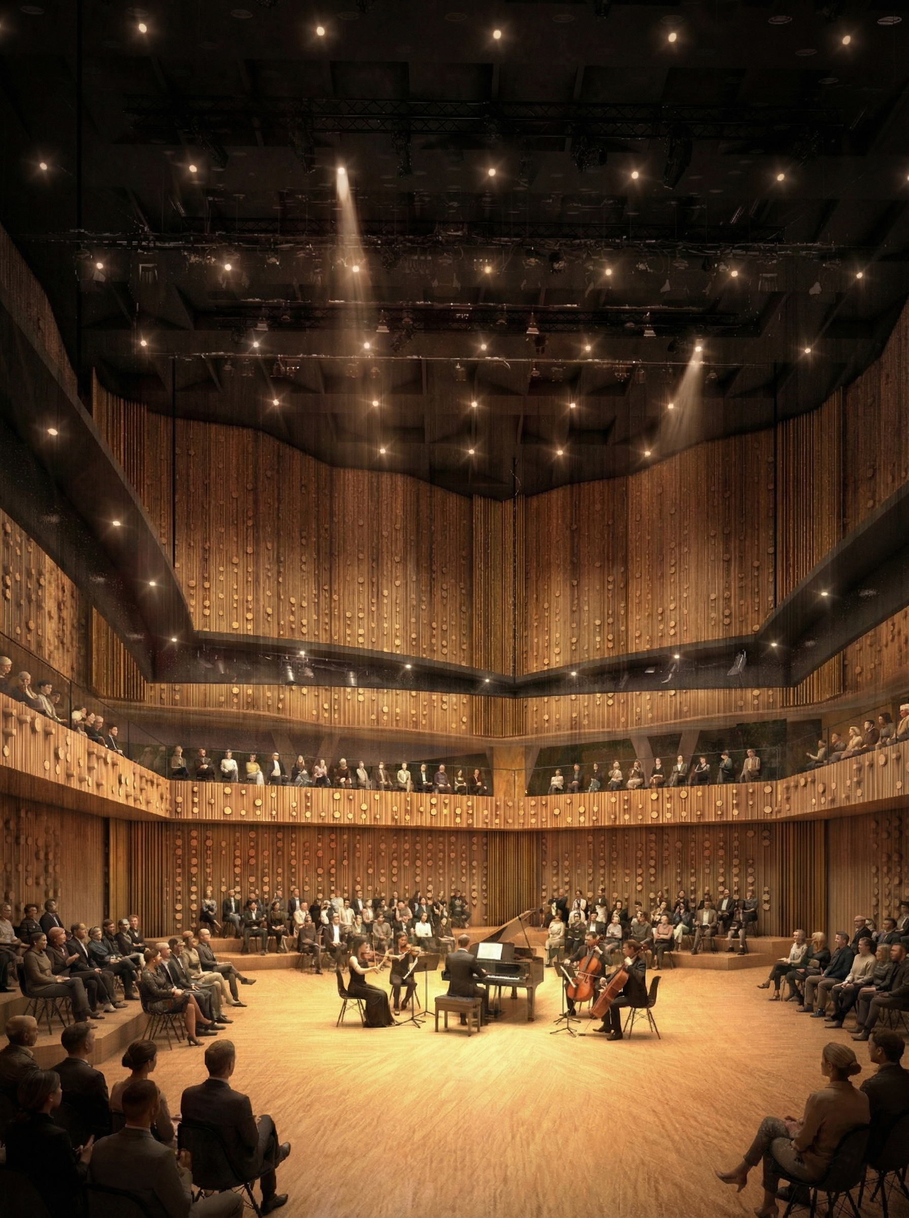 Progettata seguendo parametri tecnici ispirati alle migliori sale internazionali, garantirà una resa sonora impeccabile grazie alla consulenza di Nagata acoustics, specialisti rinomati a livello mondiale.